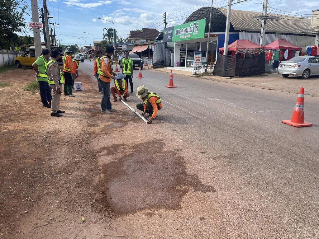 มอบหมายให้ชุดสายตรวจจราจร ร่วมกับ แขวงทางหลวงหนองคาย ฝ่ายปกครองตำบลเซิม ทาสีทางม้าลาย หน้าเซเว่นเซิม