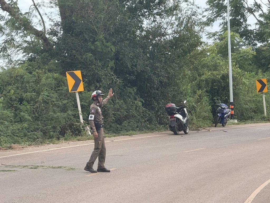 อำนวยความสะดวกการจราจร อุบัติเหตุรถจักรยานยนต์ชนรถพวง ถนน เฝ้าไร่-เหล่าอุดม..สภ.เซิม ..
