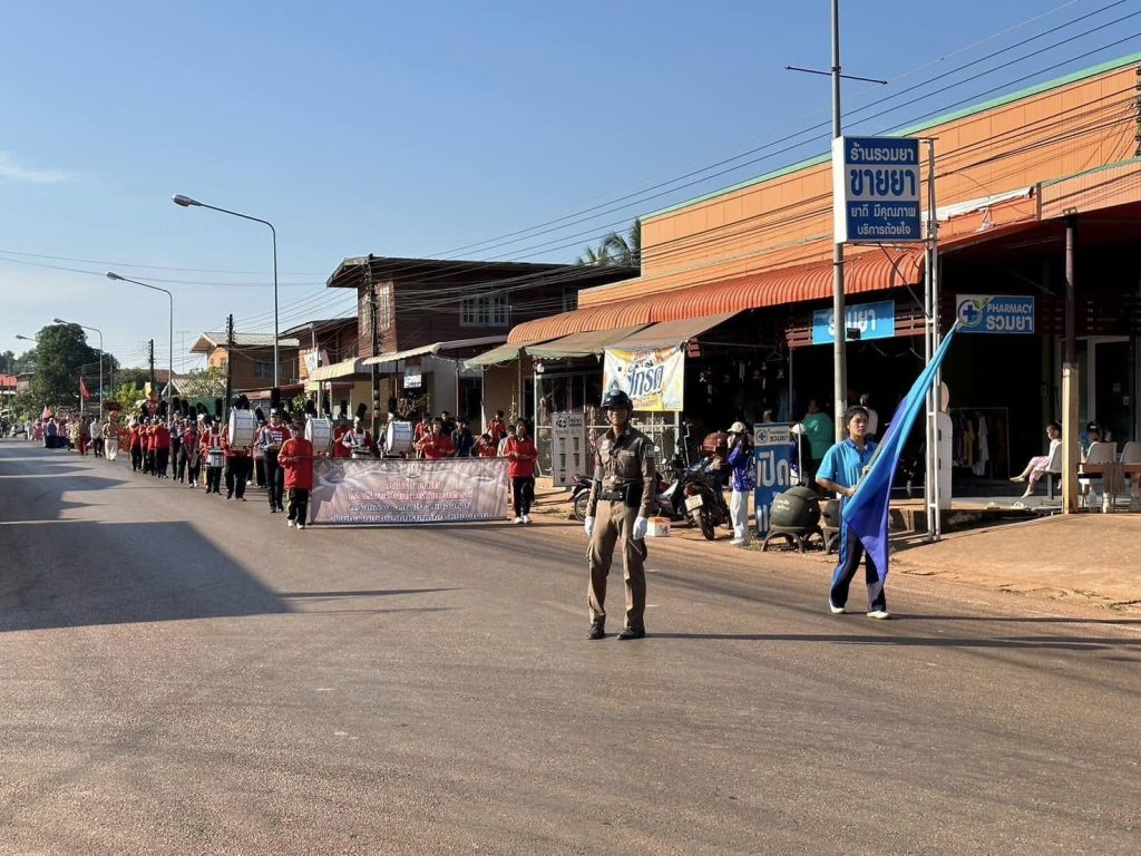 พ.ต.ต.ประจวบ ยศรุ่งเรือง สวป.สภ.เซิม พร้อมด้วยชุด 2-0 และจราจร อำนวยความสะดวกการจราจร ขบวนกีฬาสีโรงเรียนเซิมพิทยาคม