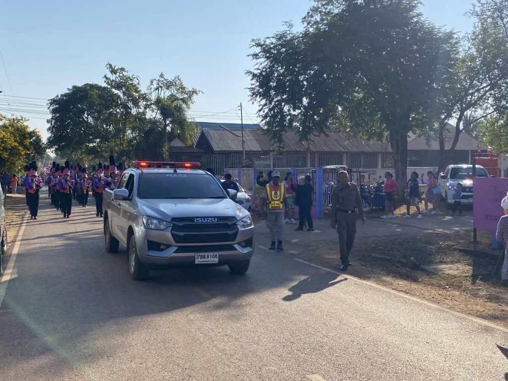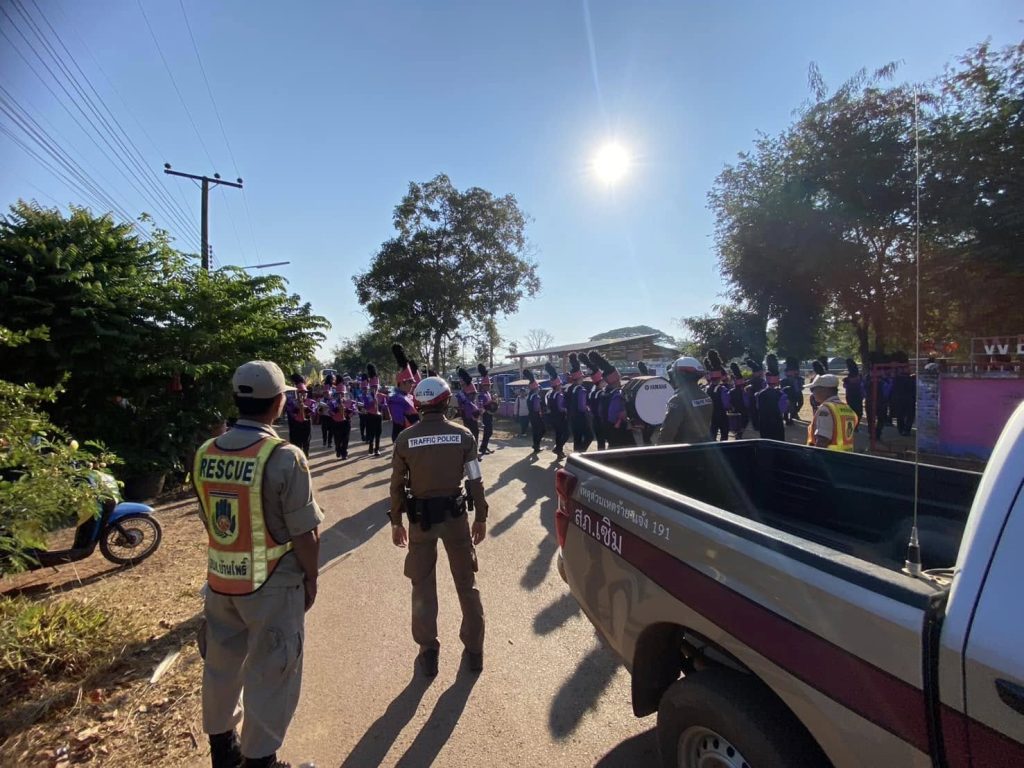 พ.ต.ต.ประจวบ ยศรุ่งเรือง สวป.สภ.เซิม พร้อมด้วยชุด 2-0 และจราจร อำนวยความสะดวกการจราจร ขบวนกีฬาต้านยาเสพติดตำบลบ้านโพธิ์