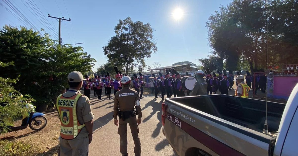 พ.ต.ต.ประจวบ ยศรุ่งเรือง สวป.สภ.เซิม พร้อมด้วยชุด 2-0 และจราจร อำนวยความสะดวกการจราจร ขบวนกีฬาต้านยาเสพติดตำบลบ้านโพธิ์