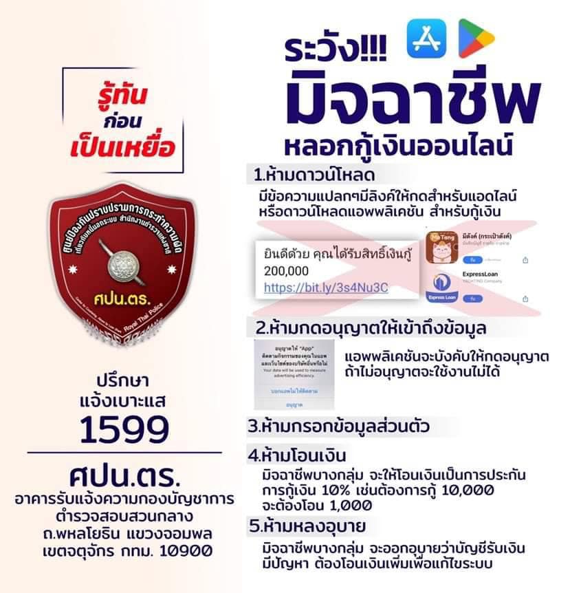 ระวังโดนหลอกกู้เงินออนไลน์ . #รู้ทันก่อนเป็นเหยื่อ…ต้องห้ามทำดังนี้เด็ดขาด ห้าม..ดาวน์โหลดเมื่