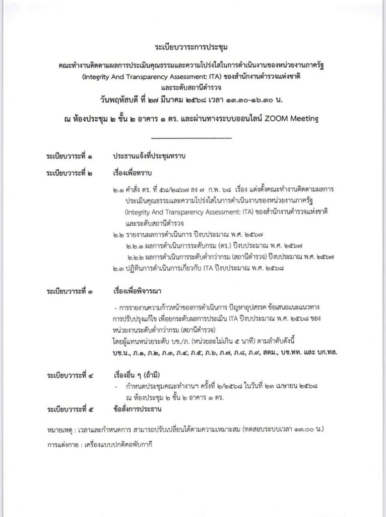 ประชุมคณะทำงานติดตาม ITA จาก จเรตำรวจแห่งชาติ